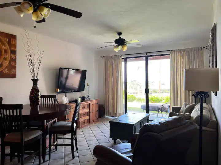 Positioned along a quiet coastal stretch between Cabo San Lucas and San José del Cabo, this accessible ground-level sanctuary delivers an ideal blend of seclusion and proximity to the energy of both downtown areas. The inviting interior provides a comfortable haven for unwinding after adventures or simply soaking in the tranquil ambiance of your natural surroundings.